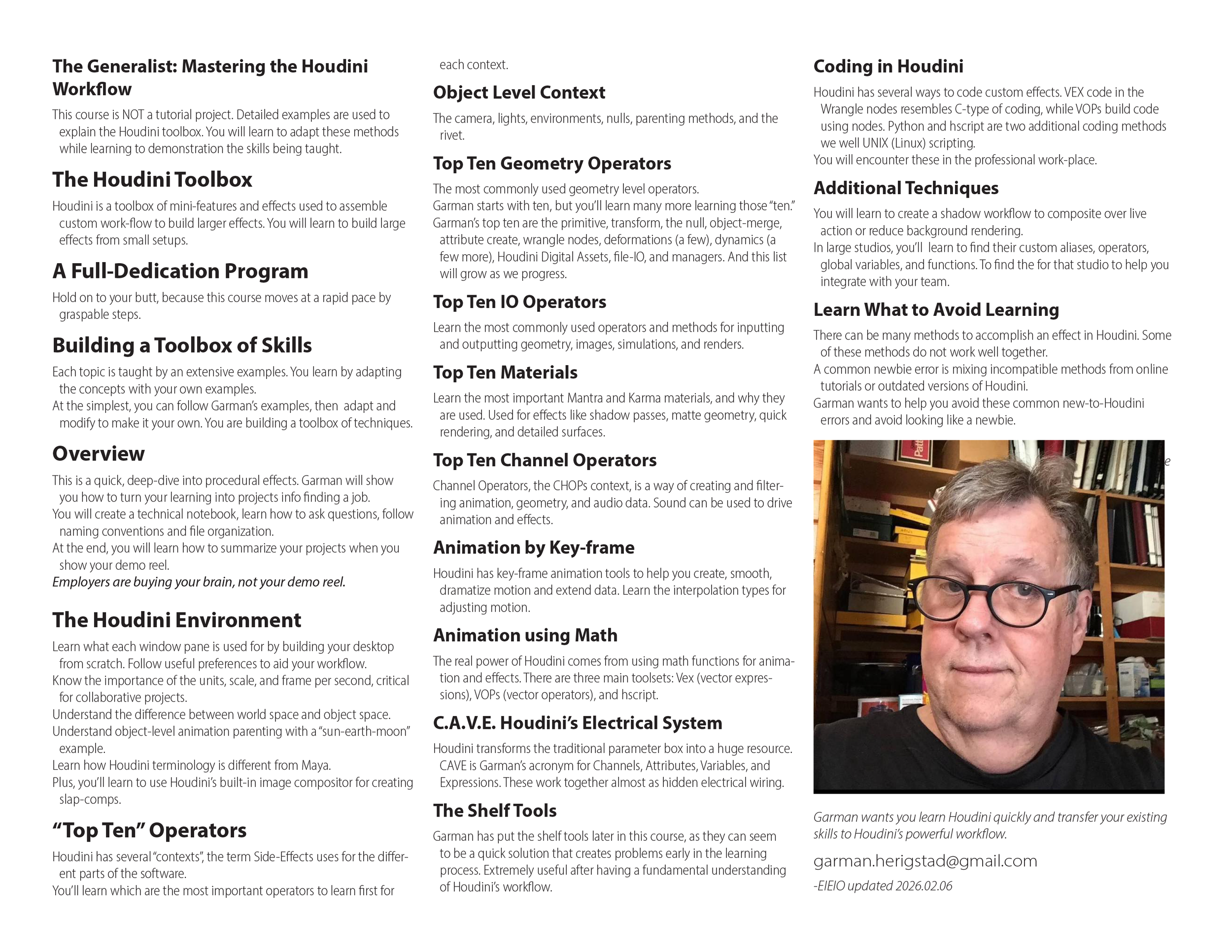 The tuition is USD $1000 per month (four weeks), includes: A) Two one-on-one weekly sessions, B) Garman’s video tutorials and assignments, C) Email access during the week for quick questions. D) Insights from Garman on how to work as an efficient professional.